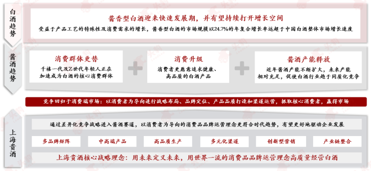我们认为,在酱酒逐渐成为中国白酒行业的未来主流趋势背景之下,伴随着消费变化及产能的释放,酱酒行业的市场竞争还是要回归于消费端市场,谁更能抓取核心消费者,谁就更有机会赢得未来。