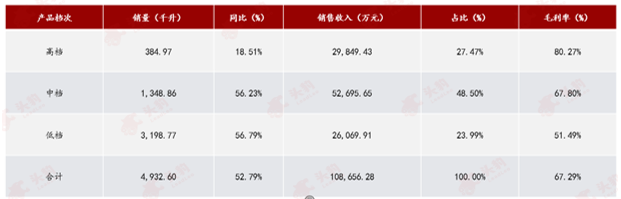 动态打造多元化产品矩阵,满足多元化消费需求。在这一点上,公司秉持消费品品牌运营理念,不断敦实自身产品能力,以消费者为导向,持续跟踪市场动态,抓取核心消费者需求,匹配并创新产品。从低价格带的低度果酒到高价格带的高奢酱酒,不断填补价格带空缺,满足了更多不同类型消费者饮酒需求,特别是新一代年轻消费群体。