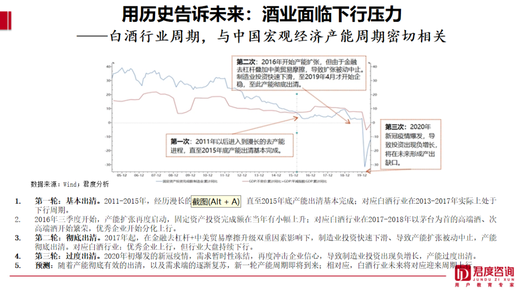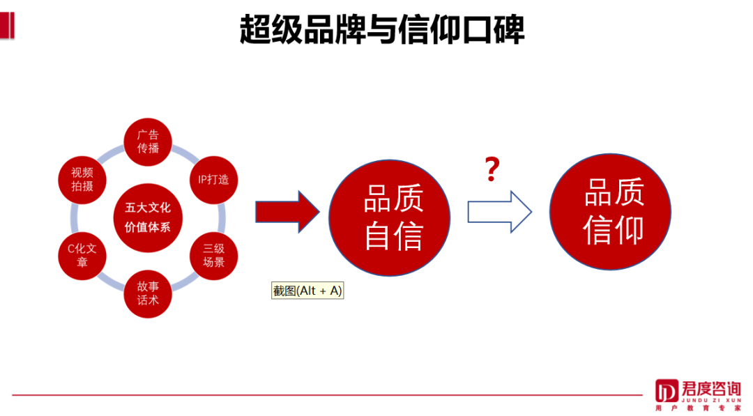 茅台卖得很贵,但是茅台之外还有很多的品牌价格也卖得越来越贵。今年的一位客户,他们目标200亿,上半年目标100亿,提前一个多月就完成了。在研讨会的现场他问了一个问题:“为什么中国的经济形势看着不好,我们在业绩增长的同时,我们最高价位的千元价格的产品反而增长得更快呢?”这实际上面临一个重大的机会,也就是说你的千元价格的产品之所以未来这几年能做到100亿,是因为在过去的20年,我们看到中国酒的消费起伏周期的背后有一个规律,这个规律受两个因素影响。第一个因素是整个中国宏观经济的产能周期。中国宏观经济的产能周期是中国白酒消费周期的晴雨表。当宏观经济产能周期上行的时候,中国白酒消费周期就会上行;宏观经济产能周期下行的时候,中国白酒消费周期就会下行。第二个因素是中国经济发展过程中生产资料的分配方式。计划和市场调控生产资料的分配,用经济学家的话说,就是所谓的国进民退还是国退民进,这两种不同的调控生产资料的分配方式,也极大影响了中国酒,尤其是中国白酒,或者说高端的中国白酒的消费。我们看到当前环境下,这两个因素是相对冲的。一方面宏观经济产能周期在下行,在疫情之后没有达到当时乐观的预期,对中国白酒的消费是有影响的。能够看到酒瓶数越来越少,但是生产资料的分配方式又在拉升白酒的消费高端,尤其是高端的宴请和礼品。所以这是两种不同的力量、两个方向,它形成了一种撕裂,一种冰火两重天的状态。那么我们怎么面对这种形势,怎么给消费者建立更好的关系,让企业能够形成更高质量的发展?我们用历史告诉未来。今天说最牛的是茅台,但是在1998年的时候,最牛的是五粮液,不是茅台。1998年的茅台是亏钱的,季克良老师临危受命,被任命为茅台集团的党委书记,集党委书记、董事长、总工程师于一身,茅台如何面对酒业大王五粮液的重任压到了他的肩上。五粮液怎么被超越的,有一个我们认为特别重要的原因是,茅台和五粮液相比,今天的五粮液有没有故事。25年前茅台的做法可以说是中国酒业未来10年、20年的前传。时隔13年后,季克良老师再次执掌茅台,面对强大竞争压力,他的做法是拿起笔,选择了以文章为武器,奋笔疾书,连发多篇雄文,打响了茅台反击战。正是季克良的这几篇雄文,奠定了今天千亿茅台的理论基础。“世界上最好的蒸馏酒是茅台酒”类似这样的文字,他写了几十万字,这些文章涵盖了茅台的品质文化、企业文化、品牌文化、产区文化、历史文化。当时还没有回厂游和品鉴会,但有中心化的媒体。茅台把它的故事通过参考消息和半月谈走入政商经营人群的案头,随便一个领导都能给你讲茅台的故事,这就是口碑,这就是“社交货币”。遗憾的是,我们只看到五粮液设计的“中国的五粮液”,它只有广告没有讲好故事。故事是什么,是吃饭时的谈资,在席间说着别人不知道、自己却知道的事。所以无数的人奔走相告,为茅台做一次又一次免费的传播。当然也有人说茅台把缺点变特点,把特点变优点。但在今天这样一个重口味的时代,茅台一骑绝尘,成为口口传颂的超级品牌。所以,要走向未来,那么茅台是中国酒业的前传。这个前传的前提条件就是要做一款有特点的、消费者容易记住的、或者说我们说好喝的酒。但是好喝的酒25年前是五粮液,时间再往前推是汾酒,而今天是酱香的茅台,所以好不好喝只是一个主观的定义。梳理一下茅台能够成为超级单品的故事,它不仅仅是诸如“离开茅台镇生产不出茅台酒”、“12987”、“国酒茅台,喝出健康来”等等金句,它有无数的故事。这些故事是有因果关系的,它让每个人一听就听得懂,听得懂就容易传播。其实五粮液、汾酒这些好的企业都有很多的沉淀,但是如何把它们变成话术、故事、社交货币,变成口口传颂的、人人都愿意去讲的内容,这是我们认为今天中国酒业走向未来的关键,是中国酒业高质量发展应该走向的方向。通过和消费者之间真诚地讲述感人的故事,消费者是会买账的。茅台的成功不是个例,口口传颂的用户教育在行业外也有一些非常成功的案例,比如飞鹤奶粉在打败进口奶粉的过程中,在2020年疫情那年做了100万场围绕妈妈的教育会。所以,跟消费者之间讲好故事,把真正的好产品跟消费者面对面地讲清楚、说明白,形成口口传颂是中国酒业高质量发展的关键。要讲好故事有三个办法,分别是因果自洽、公域私用、理入感出。第一,因果自洽。一杯酒,对消费者来说是模糊的、抽象的、不可知的。因为酒很复杂,它涉及了一二三产业。如何把一杯好酒讲明白,就是把一杯好酒的故事翻译成消费者听得懂的语言。今天中国酒行业有个很大的误区,那就是讲一堆自己不幸的东西,讲自己几千年的历史、酒坊,其实这些东西跟一杯好酒没有什么关系。消费者关心的永远是和自己有关的,他们关心的是利益点,利益点是饮前、饮中、饮后。所以和消费者沟通一款酒,不要耍流氓,上来要对消费者讲清楚对你有什么好处,我这杯酒能够带给你怎样愉悦的体验,这个体验是实打实能体验出来的。讲清楚对消费者的好处这叫“果”,而“因”就是我这杯酒入口柔、喝了不上头的原因。“果”叫利益点,“因”叫支撑点。我们要通过消费者听得懂的利益点,顺藤摸瓜告诉他为什么这杯酒有这样的特点与优点。第二,公域私用。讲故事