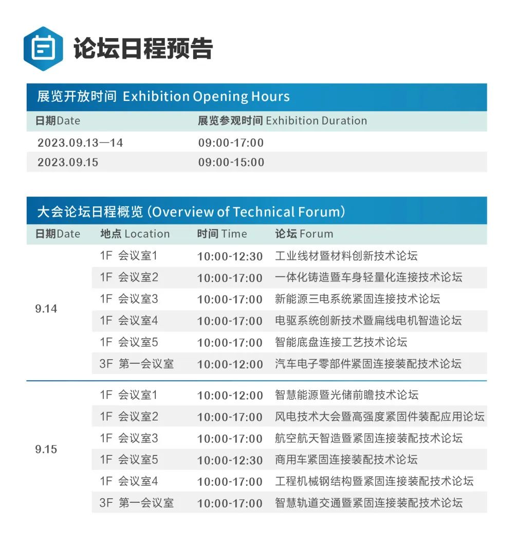 GAF2023不仅是紧固连接装配产业的专业展会,同时也是发布前沿技术、分享行业发展趋势的绝佳之处。展会同期,主办方与上下游产业头部名企、各大院校等通力合作,推出16场专业大会/论坛,为行业同仁提供技术交流的平台,创造商机、架设合作桥梁。