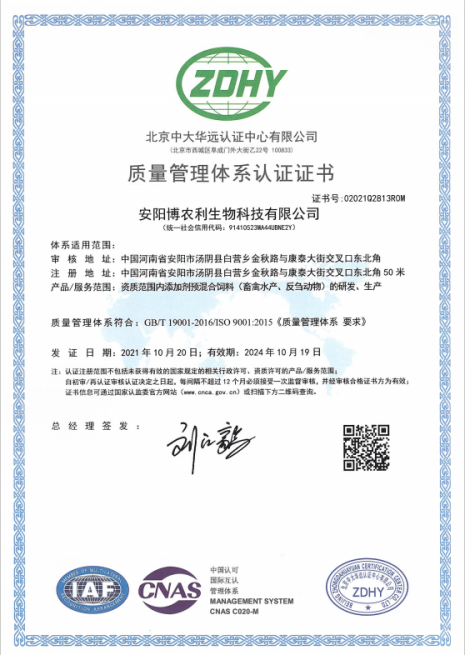 博农利始终坚持精细化产品管理和高标准质量管理,以优质产品和服务赢得市场青睐。公司严格按照ISO9001、ISO22000质量标准,秉承“精选原料、精制载体、精湛工艺、精益管理、精准营养”五精理念。从原料到生产,质量层层把关,确保产品质量可靠,品质卓越。