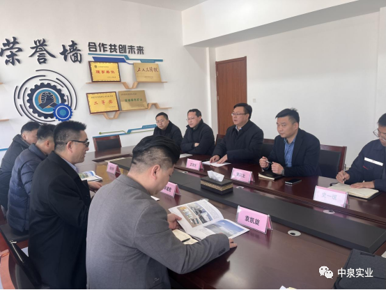2月23日上午,中泉碳中和科技集团有限公司副总经理宋建君、销售总监袁凯旋等,到访国联井盐公司,就投资项目和前景应用、落地合作模式等情况进行交流,洽谈项目投资合作事宜。国联井盐公司总经理黄以龙,黄码镇党委书记王荣生等参与接待。