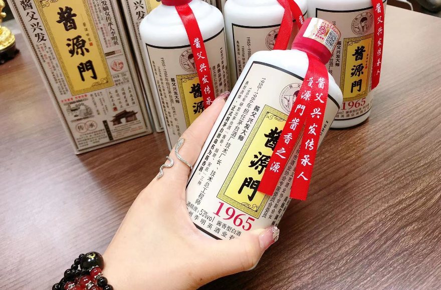 酱源门·1965 度数: 53%Vol. 净含量: 500ml*4 酱源门1965风味物质成分丰富,酒体粘稠,挂杯密、粗、长且持久,看着厚,历经5年储存,自然老熟,使得酒体中的芳香物质不断增加,酒体厚重,香味丰满,给口腔带来粘稠润滑的重量感。品酒,酱源门白酒吞咽入喉时,酒香从口腔进入鼻腔,酒气持久浓郁,酒尽空杯时,香气优雅,沁人心脾,留香持久!