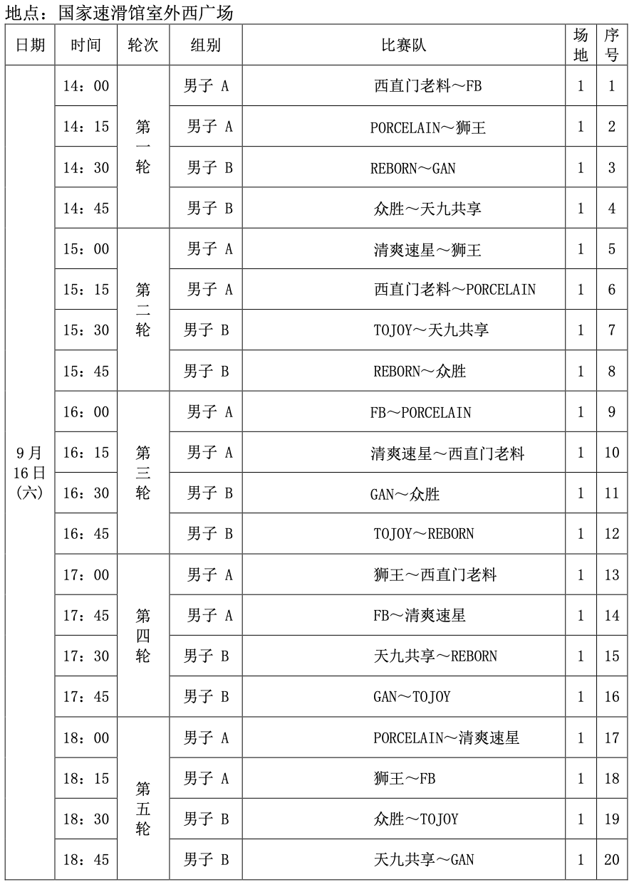 北京市总决赛的赛制跟分站赛的赛制基本相同:9月16日,四个小组各自进行组内循环赛,每个小组的前两名共8支队伍晋级9月17日的淘汰赛阶段比赛。需要注意的是,总决赛将不再进行5-8名的排位赛。
