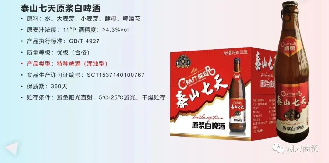 产品名:泰山七天原浆白啤