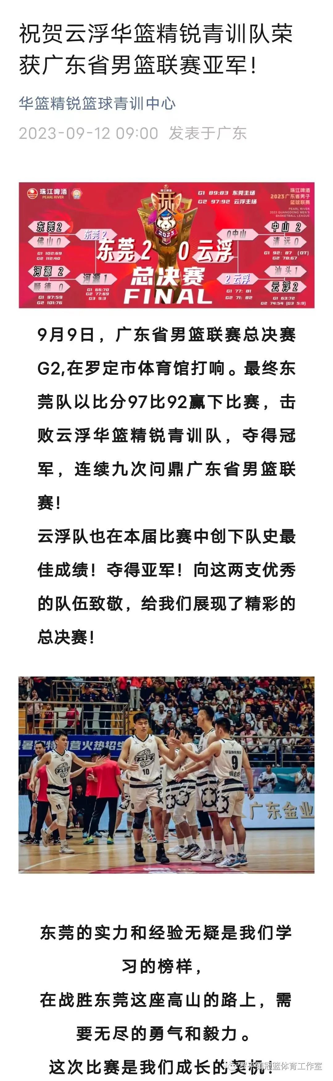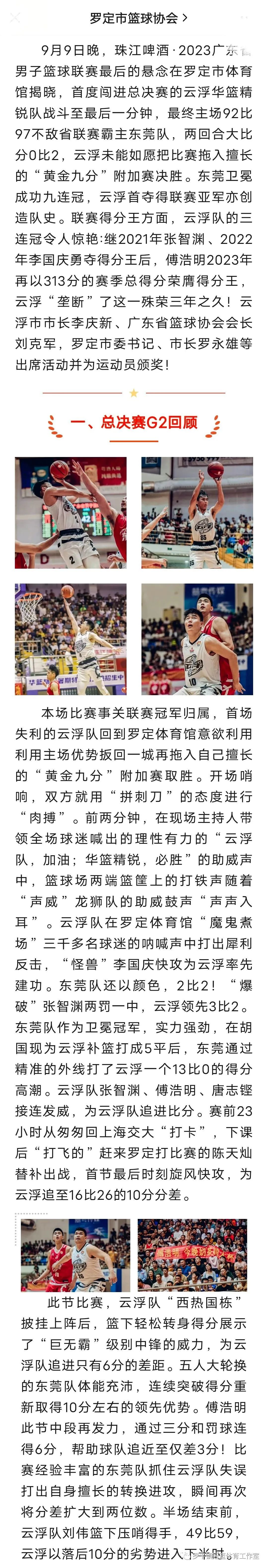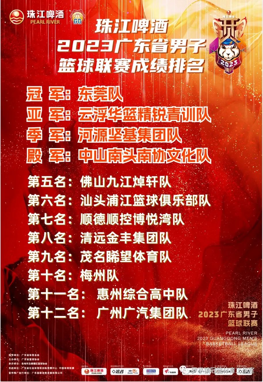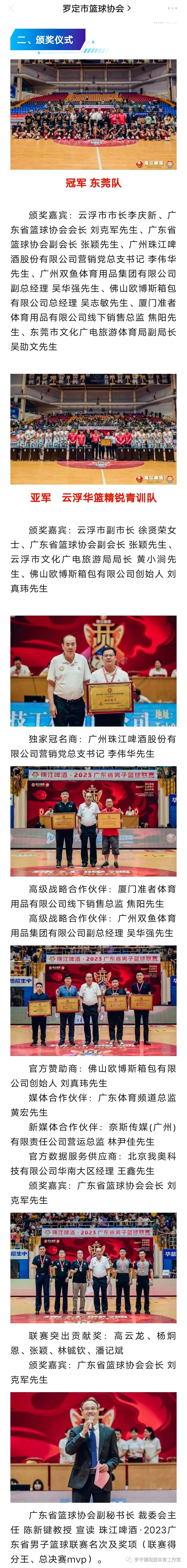 珠江啤酒·2023广东省男子篮球联赛闭幕,云浮队首夺得联赛亚军创造队史.