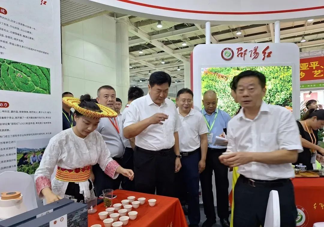 茶博会上,“邵阳红·茶”展区产品琳琅满目、让人应接不暇。参展企业集中展示、分享、推介了包装精美、形式新颖、独具特色的“邵阳红·茶”,让茶友、茶商沉浸式体验“邵阳红·茶”的魅力。
