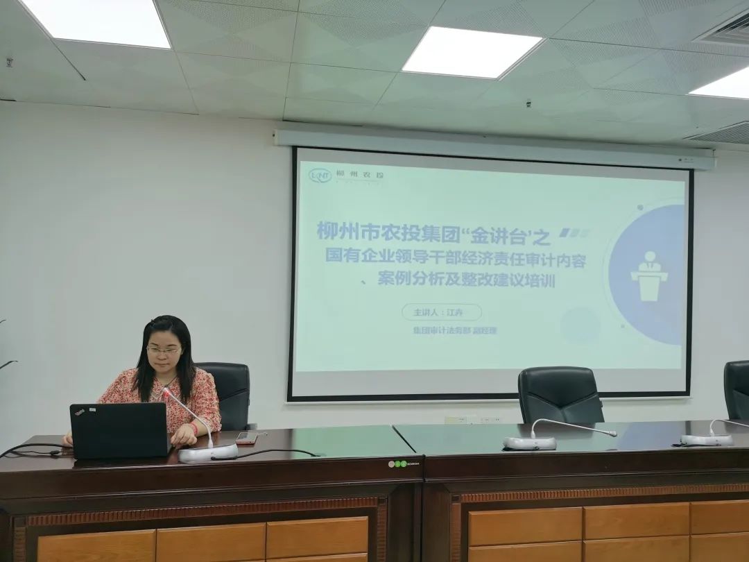 为加强对所属企业领导干部的管理和监督,促进所属企业领导干部履职尽责、担当作为,正确客观评价所属企业领导干部任职期间履行经济责任情况,保障国有资产保值增值,进一步推动经营业务高质量发展。9月5日,柳州市农投集团开展了以《国有企业领导干部经济责任审计内容、案例分析及整改建议》为主题的“金讲台”培训,本期培训由集团审计法务部副经理江卉进行授课,所属企业领导干部及负责内部审计工作的骨干近50余人参加培训。