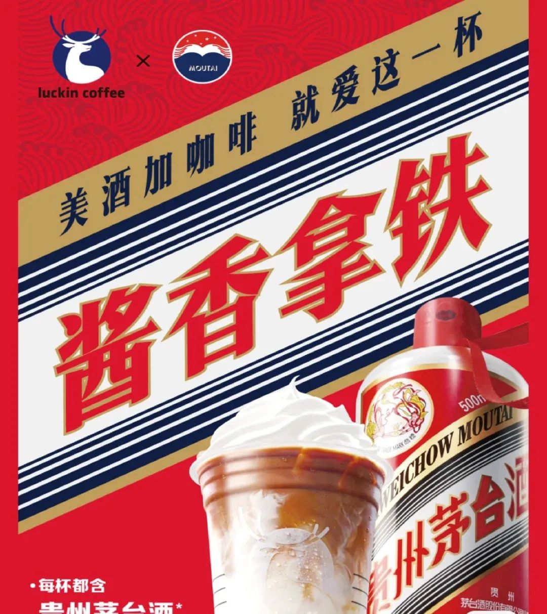 这可能就是茅台与瑞幸联手打造茅台咖啡,“降低价格”进入年轻人中去的部分原因。头部白酒大哥茅台近些年为了迎合年轻人,获取更多客源那是花样不断,先是茅台冰淇淋,接着是与瑞幸联名的酱香拿铁,最近更是宣布和德芙合作推出酒心巧克力。这些举动不仅拿捏了上班族的心更让茅台在年轻一代中小火了一把。