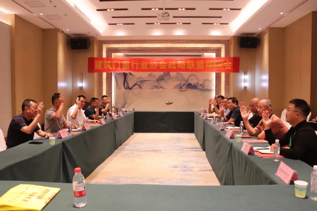 2023年9月8日上午应邯郸门窗协会邀请,任丘市建筑门窗协会会长孙国勋一行,8号上午参观了2023晋冀鲁豫门窗幕墙展会。下午参加了在瑞盈酒店举办的《晋冀鲁豫门窗幕墙行业座谈及工作交流会》和《建筑门窗行业协会战略联盟座谈会》,工作交流会上每位参会会长热情饱满的分享了,在大环境下自己企业的经营方式和未来企业如何发展做了详细的交流,战略联盟座谈会以提升产业在国内外市场的整体竞争为目标,以促进资源共享和互利共赢为宗旨。产业联盟是参与方出于确保合作各方的市场优势、将业务推向新领域,由企业间结成的互相协作和资源整合的合作模式。此次参会的有来自全国各地的10个门窗行业协会参加,经现场举手表决通过洛阳系统门窗协会加入行业联盟,共同完善提升产业链,在技术研发、生产制造、示范应用、市场开拓等方面谋求发展。