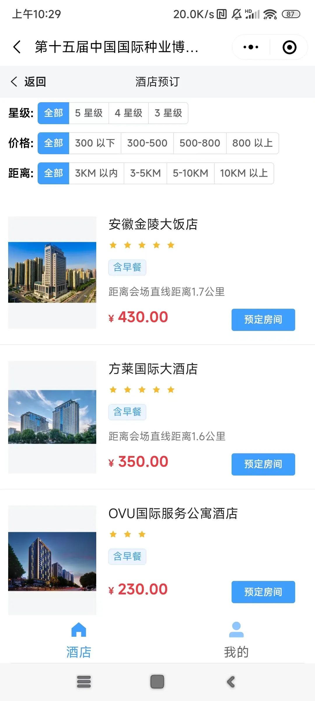 3、点击同意酒店预订协议,就可以选取对应的酒店进行房间预定了。