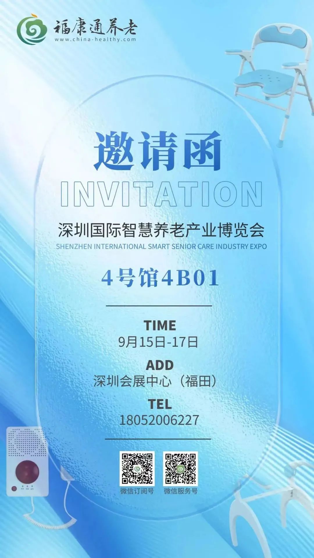 作为一家以智慧健康养老为核心的国家级示范企业,福康通在扎实服务的同时注重创新研发。此次深圳智慧养老展,由福康通自主研发的智能语音呼叫产品及适老化辅具也将精彩亮相,诚邀您届时莅临4号展馆4B01参观、体验和指导!