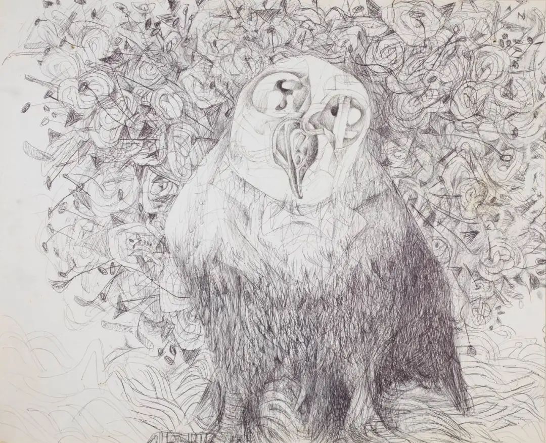 哈佛大学壁画 《人类寓言》草图系列之咚咚锵 51×76cm 纸本硬笔 1985 艺术家自藏