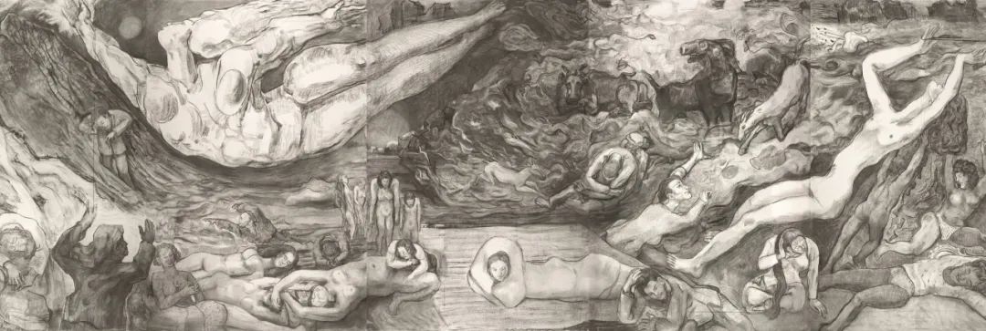 共工触不周山、女娲补天(大兴机场壁画)(局部)300×2000cm 布面炭笔 2019 艺术家自藏