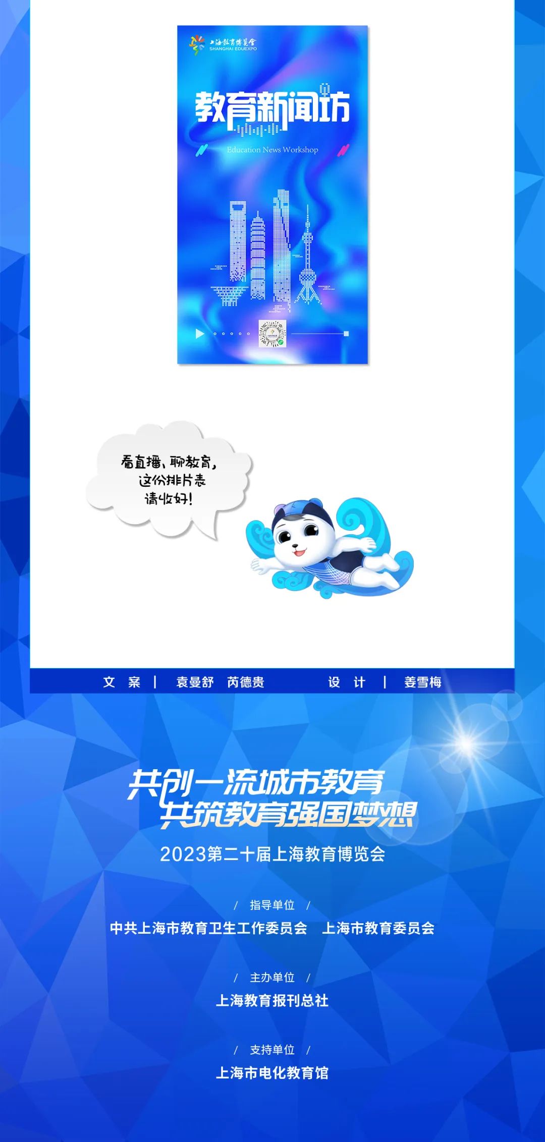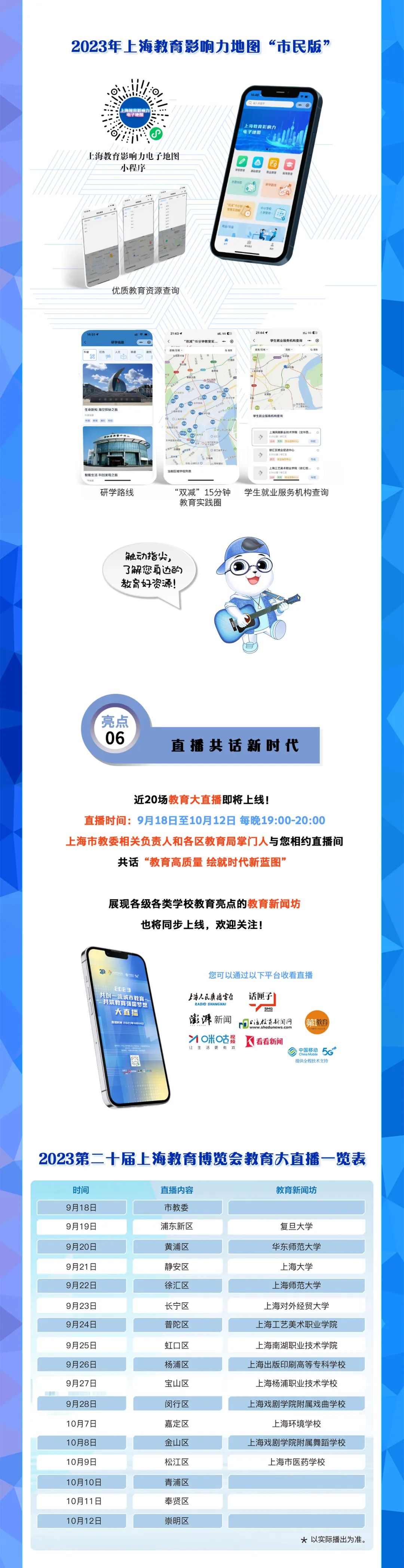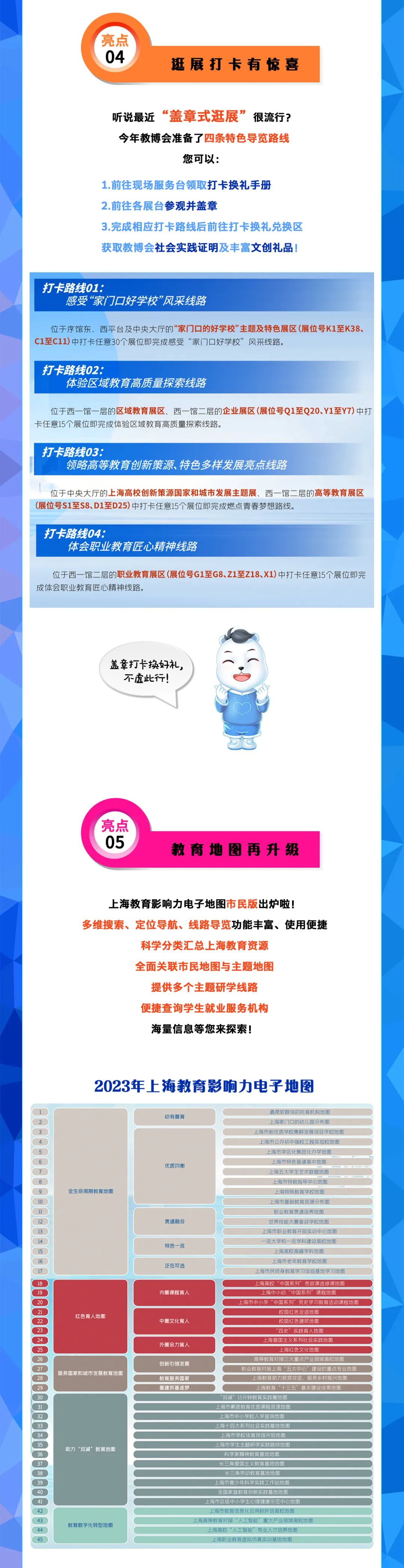 由上海市教卫工作党委、上海市教委指导,上海教育报刊总社主办的2023第二十届上海教博会以“共创一流城市教育,共筑教育强国梦想”为主题,将于9月15日在上海展览中心开幕,给您带来线上、线下为期一个多月的观展体验。其中,9月15日—9月17日为线下展,同期开展的线上展持续至10月底。