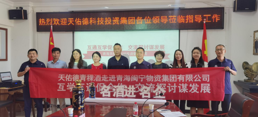 9月13日下午,天佑德青稞酒公司营销中心副总经理白海云,营销中心青海直销部部长张璐等一行六人前往闽宁物资集团有限公司以“互学互通促合作,交流探讨谋发展”为主题开展企业经营管理交流活动。