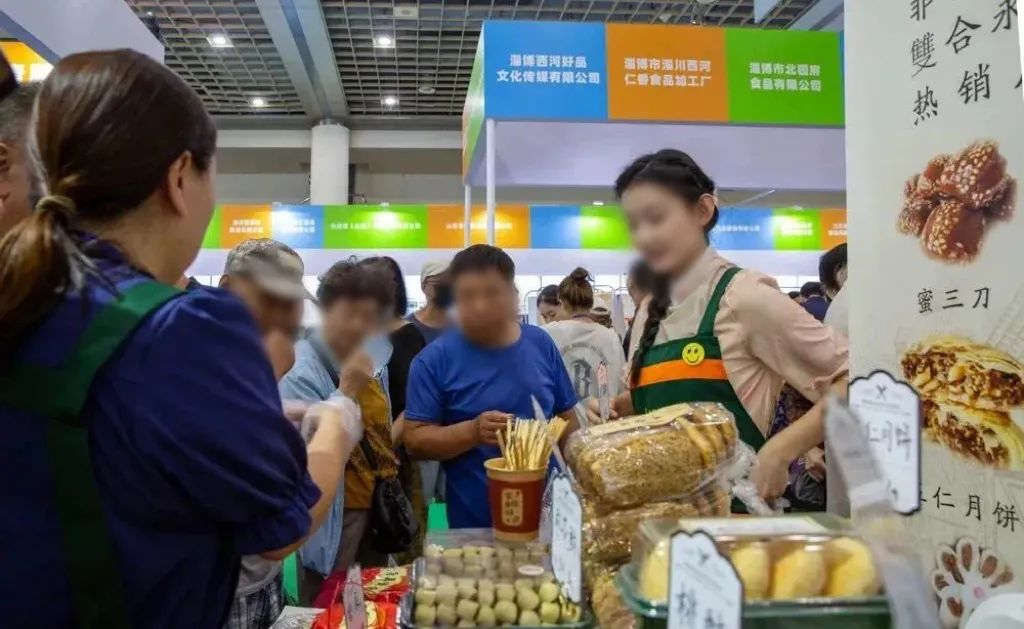 分别展示了淄博的特产美食、纺织服装