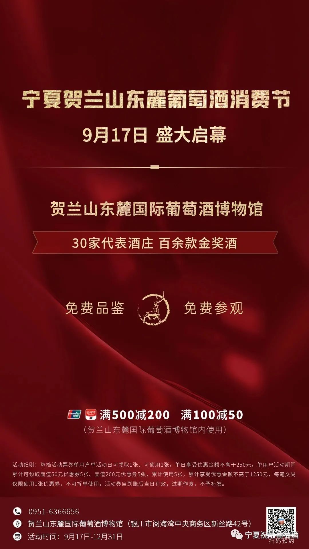 9月17日(星期天),宁夏贺兰山东麓葡萄酒消费节在贺兰山东麓国际葡萄酒博物馆正式启动。本次活动以“宁夏贺兰山东麓•世界葡萄酒之都”为主题,将突出开放性、专业性、融合性、务实性,全方位展现宁夏葡萄酒的国际范、中国风、宁夏情。