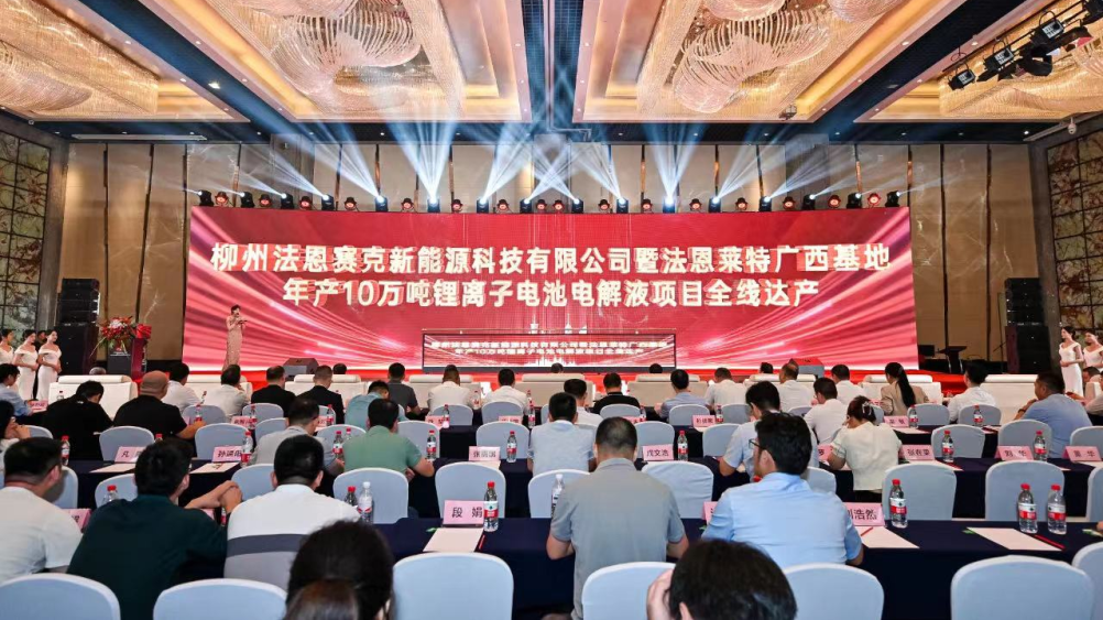 柳州法恩赛克新能源科技有限公司暨法恩莱特广西基地年产10万吨锂离子电池电解液项目全线达产仪式今年8月5日在柳州盛大举行,该项目仅以4个月的时间迅速建成并投产、达产,并将以全线达产仪式为契机,立足新能源锂电池材料行业,强化研发实力、提升产品品质、科学规划产能、精细生产管理,真正实现达产即满产、达产即盈利的目标。