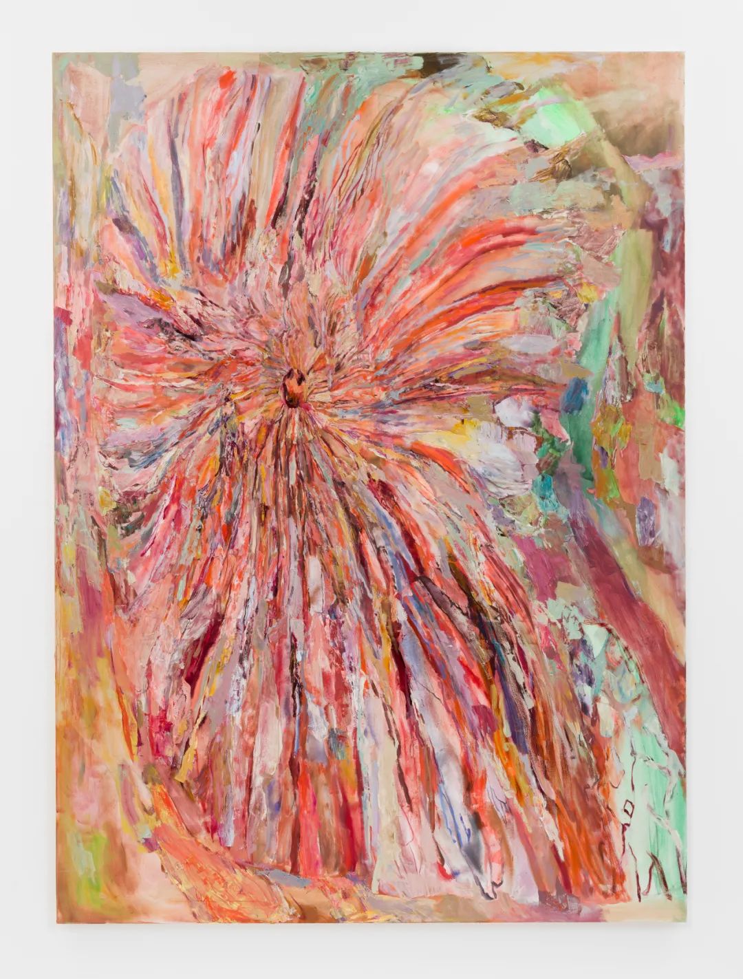 流动与厚堆形成反差之美,大量细微痕迹凝聚在一起产生爆裂和内破之势。反复的涂抹让画面中浮现出各种或微小或庞大的空间,有些向外凸起,有些则向内凹陷。每一抹痕迹——不论是临时性的、调整性的、破坏性的还是呼应性的——都是与画面互动互联的产物。虽然积小成大的过程或能释放出某种安全感,但其偶然性之中也蕴含着风险:既无法预先排演,又难以回复原貌。