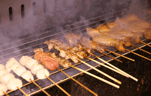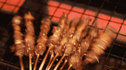 看着各种烤串在烤炉上滋滋滋地发出声音