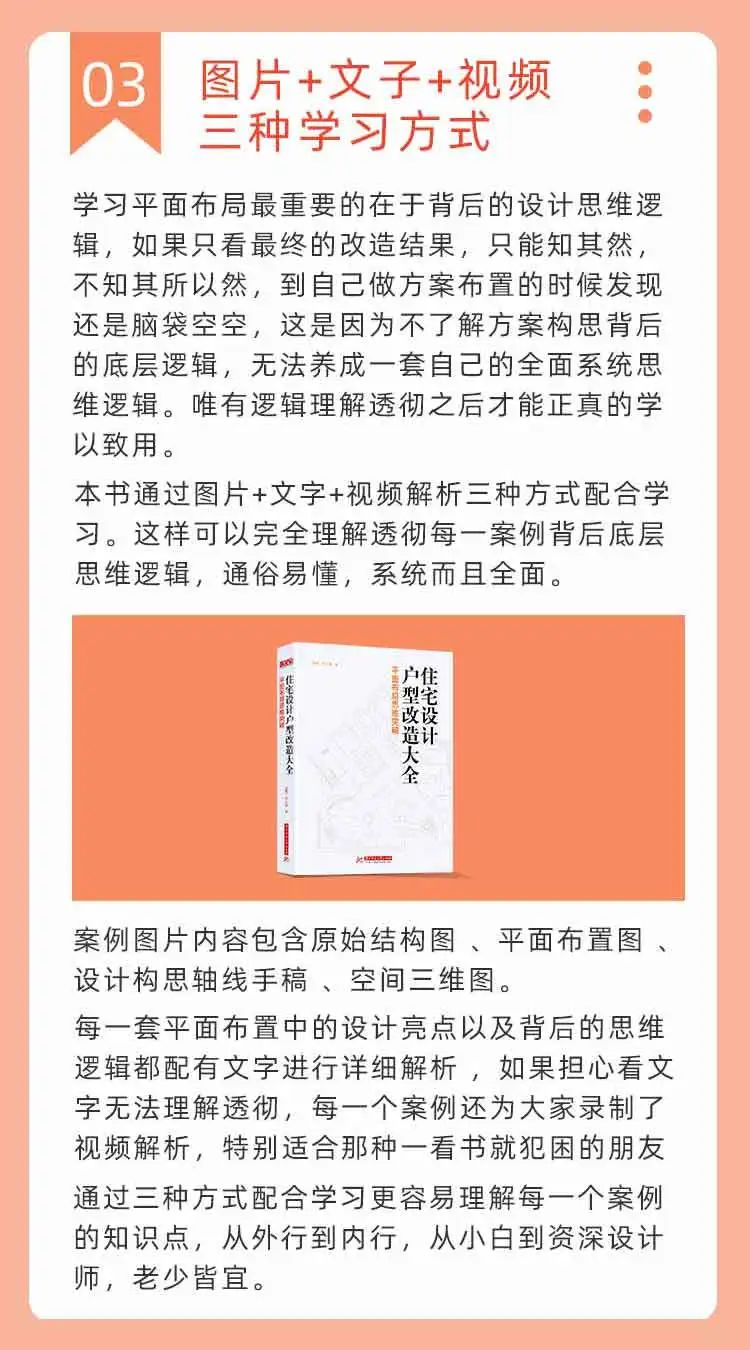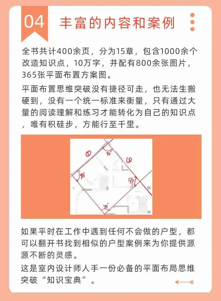 全书共计400余页,15章,包含1000余个改造知识点,10万字,并配有800余张图片,365张平面布置方案图。