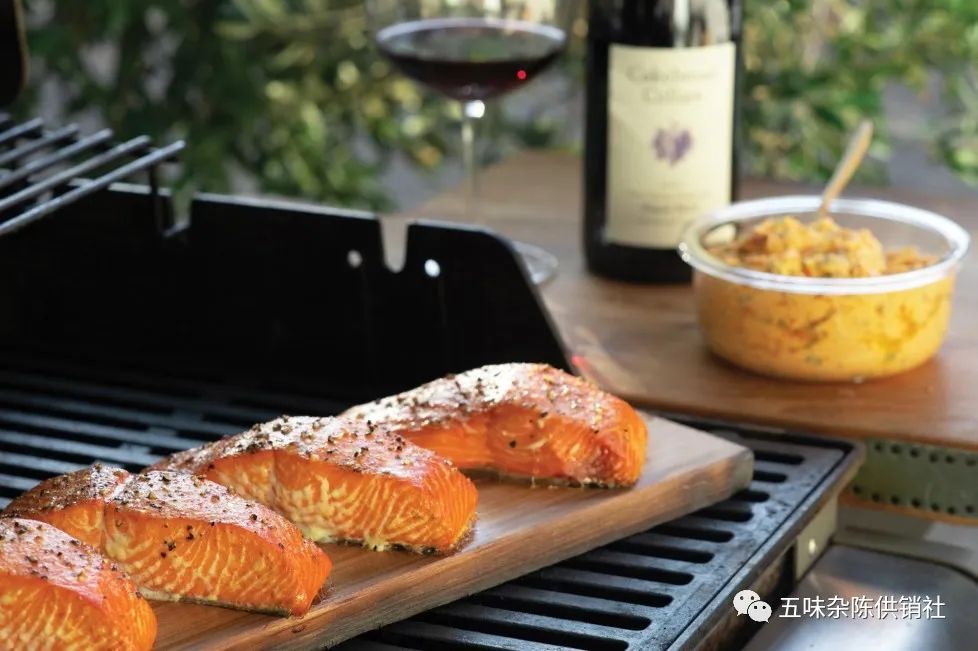 烤三文鱼:烤三文鱼的丰富味道与来自俄勒冈或新西兰的黑皮诺(Pinot Noir)特别搭配。葡萄酒的红色水果风味和温和的单宁营造出一种味觉和质地的和谐融合。