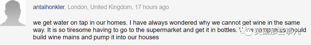 “家里的水龙头能出自来水。我一直在思考,为什么不能用同样的方式得到酒呢?去超市买瓶装葡萄酒实在是太麻烦了。制酒公司应该建造葡萄酒管道,把酒输送到我们家里。”