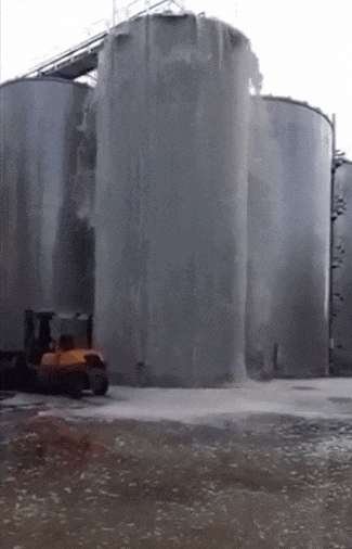 据说是员工操作不当,在筒仓里装酒过满导致的,最后足足浪费了30000多升酒。