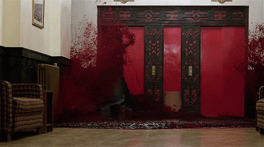 甚至有人将这一画面和《闪灵》做了对比,说这很像影片中血液喷溅的经典一幕。