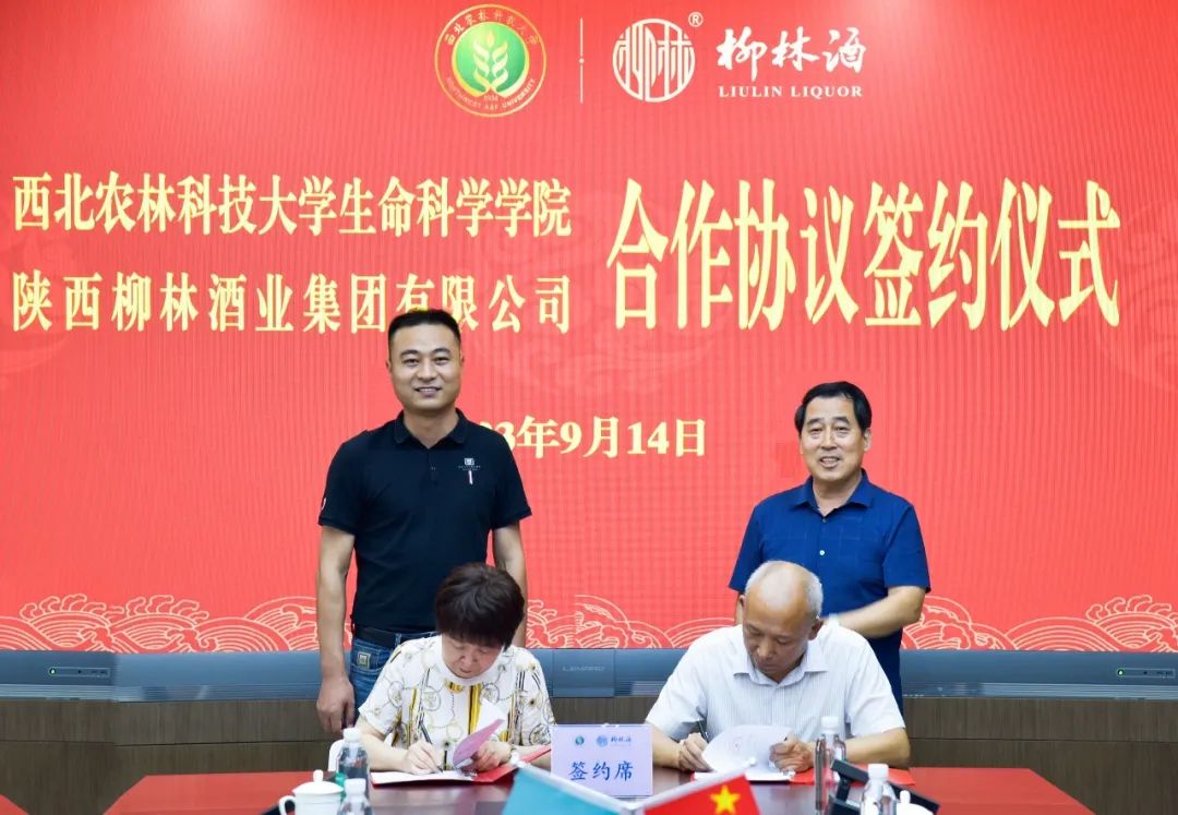 9月14日下午,陕西柳林酒业集团有限公司与西北农林科技大学生命科学学院校企合作签约仪式在柳林酒业集团顺利举行。西北农林科技大学生命科学学院党委书记徐三友,生命科学学院院长助理、生物技术系主任王瑶,生命科学学院生物工程系副主任贾志华,陕西柳林酒业集团有限公司总工程师胡建祥、副总经理吕广田等公司领导及各部门负责人出席仪式,集团纪委书记兼人力资源总监景东主持仪式。