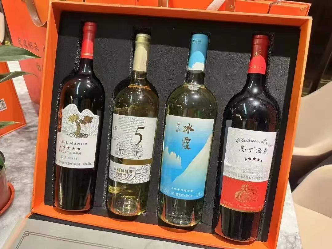 长城霞多丽干白,沙城龙眼干白,马丁五星赤霞珠,怀谷五星西拉各一支。