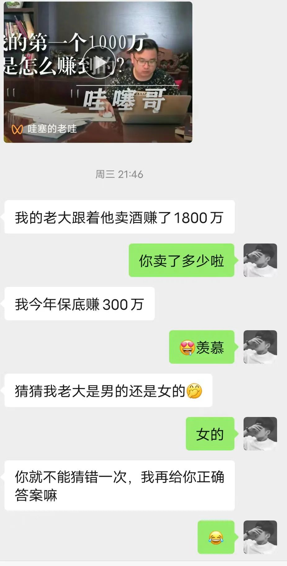 在达叔星球加的老板,之前发了个自我介绍,说是干白酒的,我觉得我也不喝酒,不卖酒,没什么链接的机会,就没细谈。