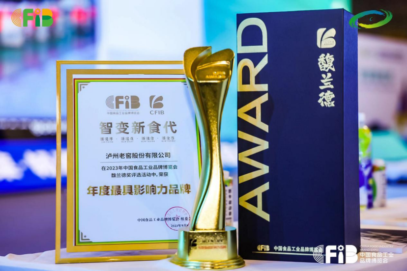 2023年9月8-10日,以“智变新食代”为主题的“2023中国食品工业品牌博览会暨中国食品产业双循环发展大会(简称CFIB)”,在四川成都世纪城国际会展中心举行。经中国食品工业品牌博览会中,泸州老窖凭借中国名酒持续释放的品牌势能,极致品质和行业地位,依托深厚的文化底蕴与历史荣耀,经中国食品工业品牌博览会馥兰德奖评审委员会专家组评定通过,荣获2023中国食品工业品牌博览会馥兰德奖“年度最具影响力品牌”。