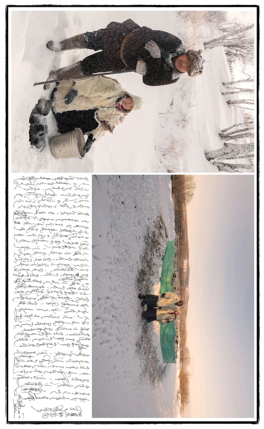The series features two photographs of a Buryat family in Xinihe. The first is a family photo or a portrait of the couple or one or two family members. The second is a documentary of the whole family or one or two family members posing next to their round sheep pen. The combination of these two photographs constitutes the real memory of the time of Buryats in China. These photos will become the solidification of emotions and times, owners and homes, life and ecology.