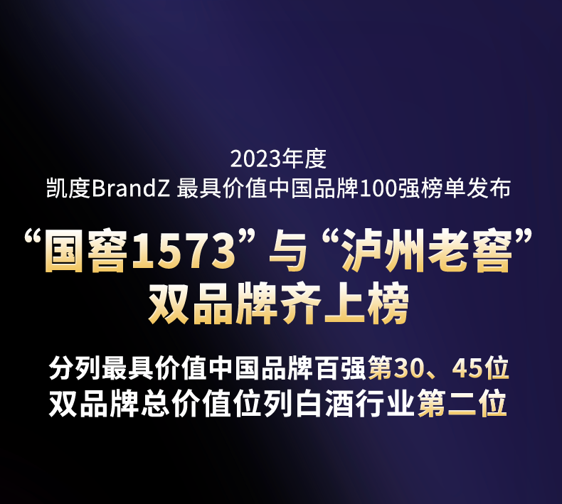 除了深厚的历史底蕴,泸州老窖更是构建起的“双品牌、三品系、大单品”的品牌体系,且品牌认知日渐清晰,品牌辨识度和含金量不断提升,其中“双品牌”即为泸州老窖品牌和国窖1573品牌,也在本次榜单双双上榜,基于双品牌的历史渊源和基因沉淀: