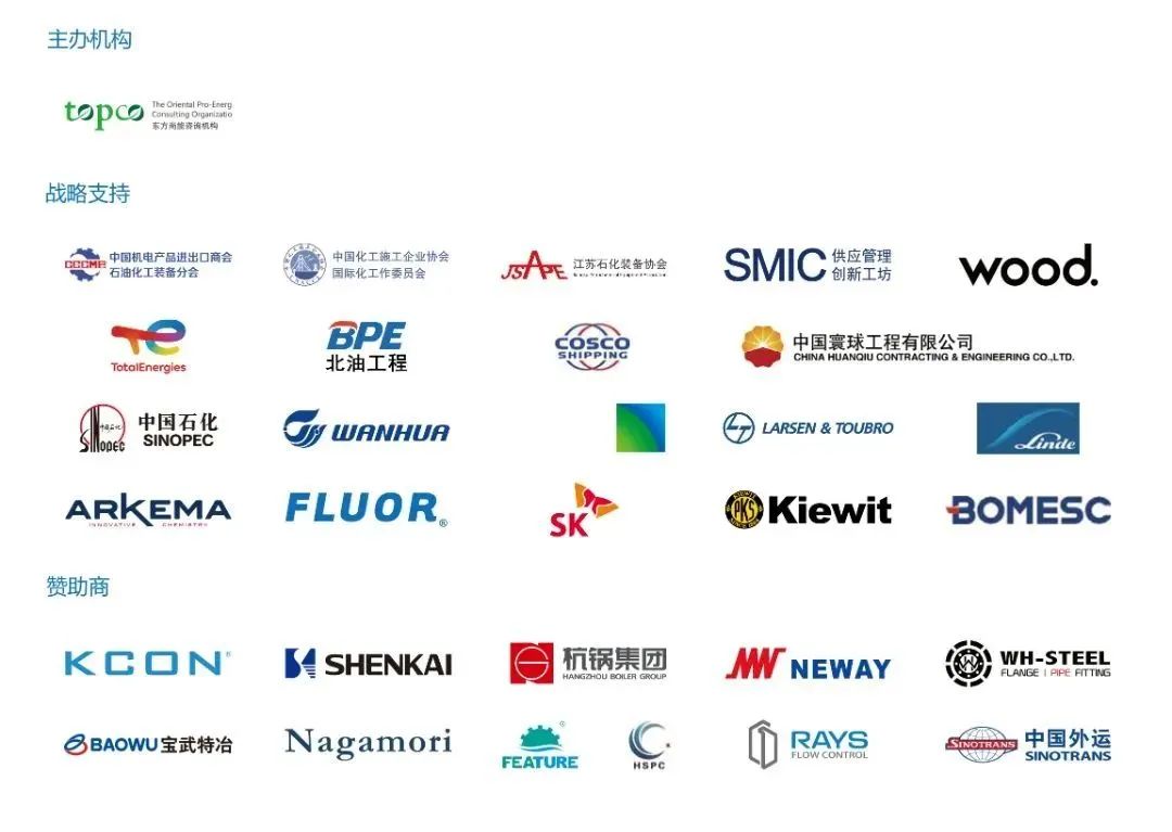 CSSOPE 2023将聚集包括沙特阿美、沙特基础工业、壳牌、BP、挪威国油、俄油、碧辟、道达尔、中石油、中石化、中海油、延长石油、康菲、巴西国油、巴斯夫、赢创、利安德巴赛尔、法国液化空气集团、法国阿科玛、陶氏、朗盛、索尔维、亨斯迈、西萨化工、万华化学、沙特国际电力和水务公司、斯泰潘、埃及Enppi、福陆、派特法、沃利、德希尼布、斯伦贝谢、哈里伯顿、博莱克威奇、东洋工程、意大利埃尼(ENI)、泰克尼蒙特工程、西班牙CEPSA、阿根廷YPF、恒力、恒逸、浙江石化、武船麦克德莫特海洋工程、英力士、Vepica工程、必和必拓、力拓、贝克休斯、鹿岛建设、三星工程、惠生、林德工程、国民油井、霍尼韦尔优欧辟、寰球、成达工程、惠生工程、华陆工程、中石油吉林化工工程、海工国际工程公司、中国石化工程建设公司、中国石化炼化工程、巨涛、杰瑞、中集来福士、中远船务、北京市燃气集团、北方国际、中曼石油、中油管道物装、东方盛虹、荣盛石化、万华化学、中国石化、恒力石化、荣盛石化、卫星化学、上海石化、恒力石化、荣盛石化、桐昆股份等等在内的众多采购巨头。
