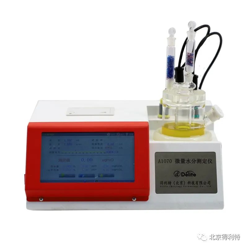 A1070微量水分测定仪采用卡尔费休微库仑电量法,依据电解定律反应的水分子数同电荷数成正比,仪器检测参加反应电荷数(库仑)自动换算成对应的水分子数,此方法测试精度高,测试成本低,能可靠的对液体、气体、固体样品进行微量水分的测定。具有高灵敏度、高精度、高再现性,低功耗节能设计,广泛适用于石油、化工、电力、制药、商检、科研、环保等领域。