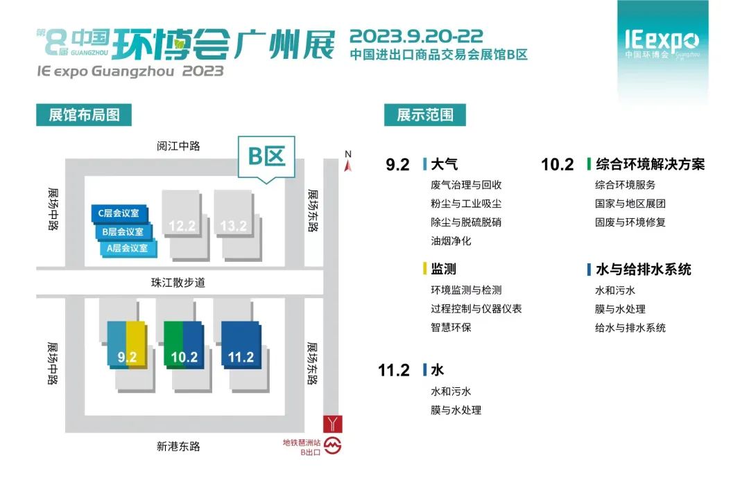 第8届中国环博会广州展将于2023年9月20-22日在中国进出口商品交易会展馆B区举办,携手近500家国内外知名环保企业,共同呈现上万种城市、工业、农村污染治理的治污与节能协同、减污与降碳协同的高质量环境解决方案。