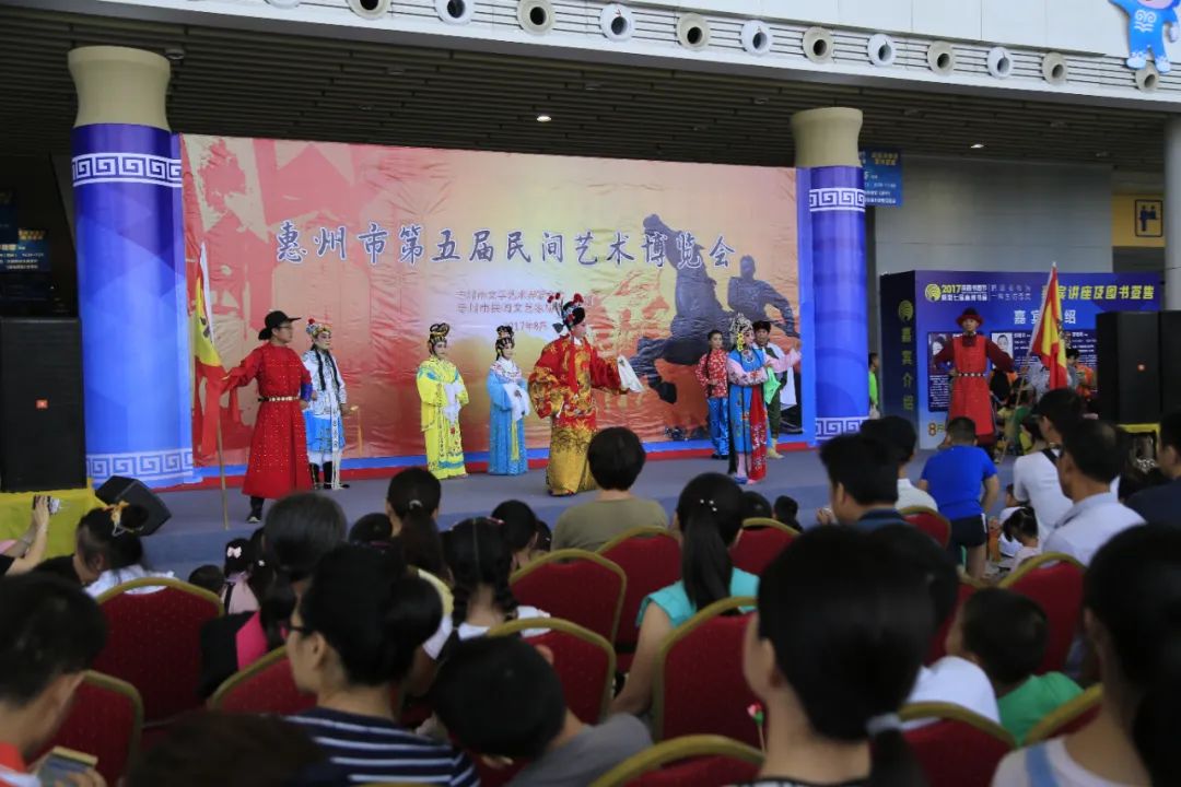 2017年8月10日至14日,惠州市第五届民间艺术博览会举办。“四馆一台“惠州花灯馆,展出惠州各县区灯艺师独具本土风情的200多盏花灯, 146幅“惠州灯俗”摄影作品展开了惠州乡村制灯、请灯、上灯、游灯的民俗长卷,600条灯谜等着观众猜领奖品。届时,“惠州市民间艺术大师”苏定明老师现场剪制头像,民间文艺家现场演奏古筝,现场教观众制作小花灯,还有会员现场手工制作。每天不同的时段,旗袍、汉服走秀,穿插表演。为纪念中国人民解放军建军90周年而设的“红色军魂馆”。以125幅美术、书法、摄影作品讴歌20年代至今的惠州红色军人。89幅摄影作品表现惠州红色军人的光辉形象、革命活动旧址、纪念馆、纪念碑、拥政爱民等,美术、书法表现红色军人的高尚情操。展览期间,市民协的书画家现场挥毫。民间工艺馆,展出作品有玉雕、牙雕、琉晶、陶瓷、木雕、农民画、景泰蓝、剪纸、刺绣、拼布、丝网花、编绳、服饰、手工、皮艺、木工手艺、漆画、烙画、石头画等20类655件;东江糯米酒等惠州特产200件。观众可以现场体验剪纸、拼布、丝网花、编绳、木工手艺、石头画制作等。工艺、书画作品交流会,有200多件作品现场销售。泥塑馆,展出泥塑作品200件。以惠州市民间艺术大师庄敏为主,带领其画室师生16人在现场制作、展示,老少咸宜,生动有趣。民间艺术表演台,设“纪念中国人民解放军建军90周年”和“传统艺术表演”专场。市民协艺术团和14个文艺团队联合演出,呈现独唱、对唱、小组唱、表演唱、舞蹈、歌舞、戏剧、曲艺、哑剧、杂技、器乐、武术丰富多样、精彩纷呈的民间表演艺术。