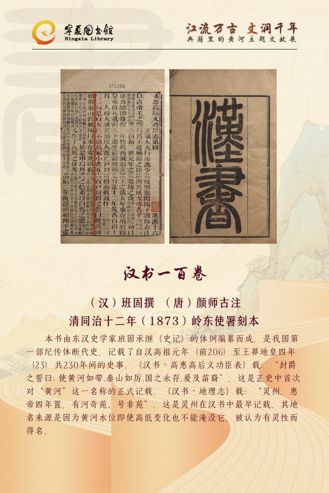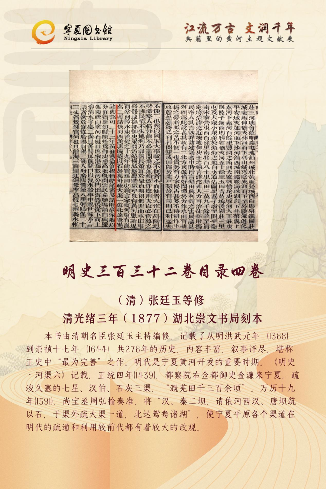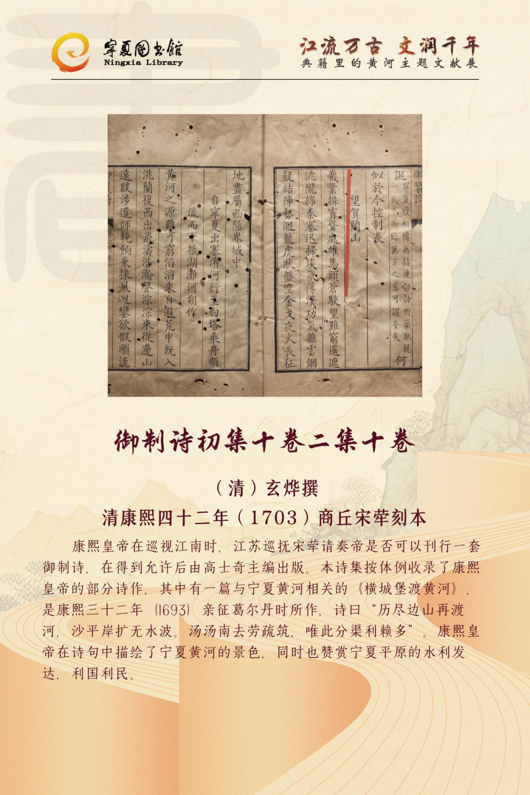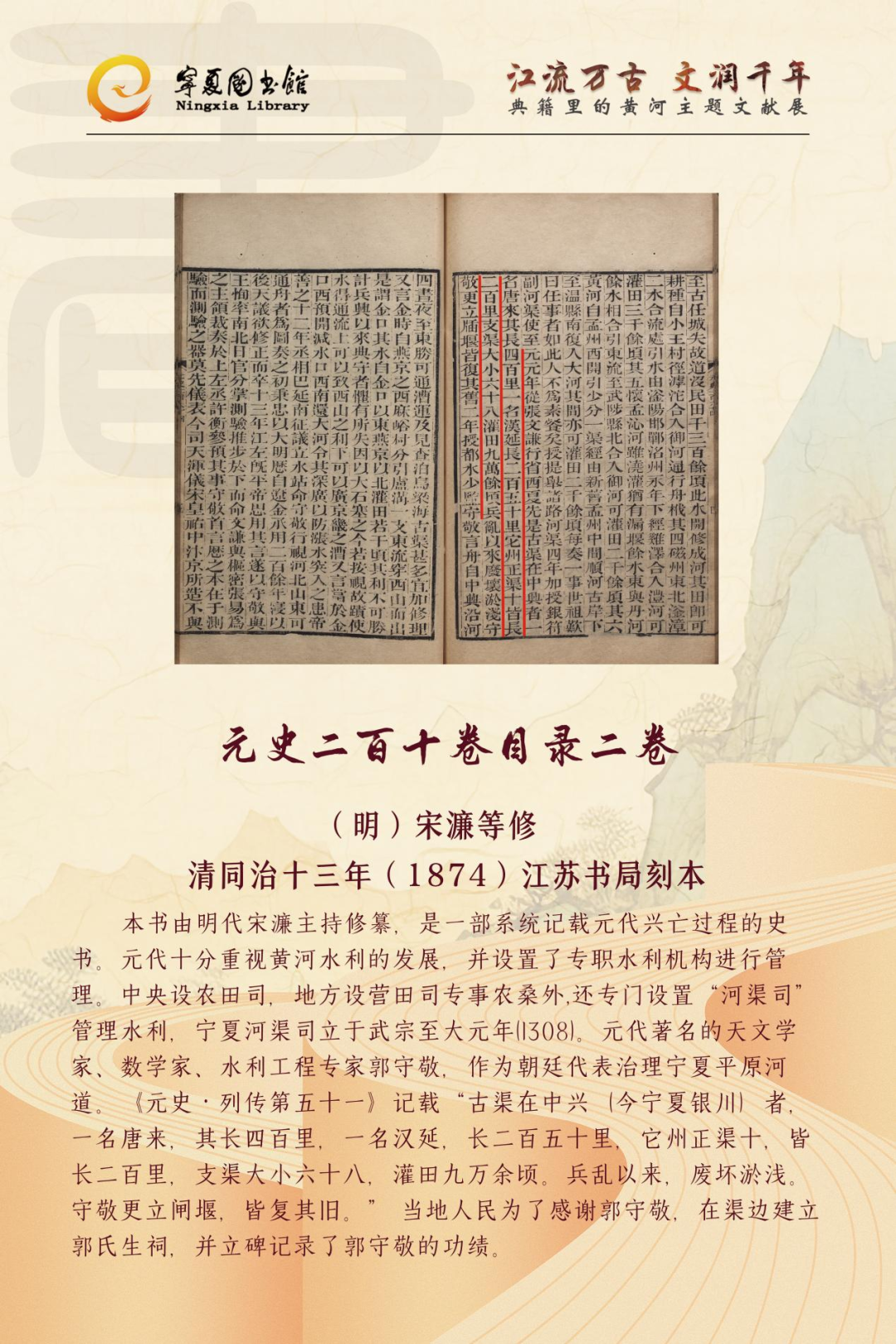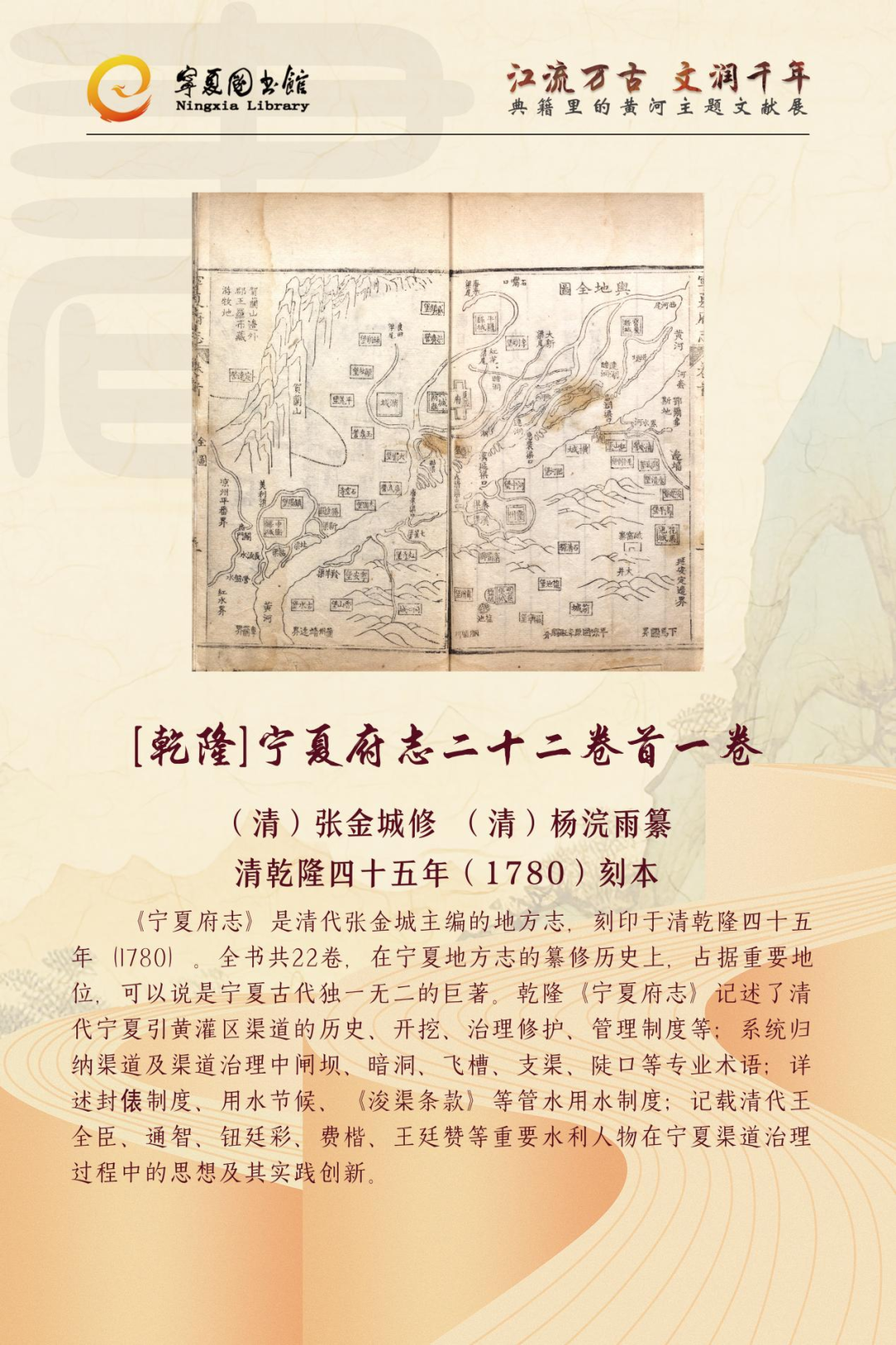 2023年中华传统晒书系列活动, 宁夏图书馆充分挖掘馆藏资源,精心遴选出与黄河相关的馆藏古籍,策划了“江流万古 文润千年——典籍里的黄河主题文献展”,分黄河源流、黄河水利、黄河诗文、黄河润宁四部分,展示黄河的历史沧桑和人文风情,了解宁夏黄河发展进程和丰富内涵。