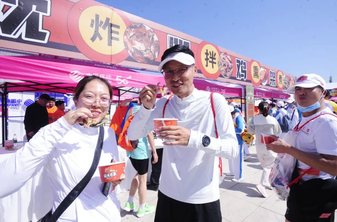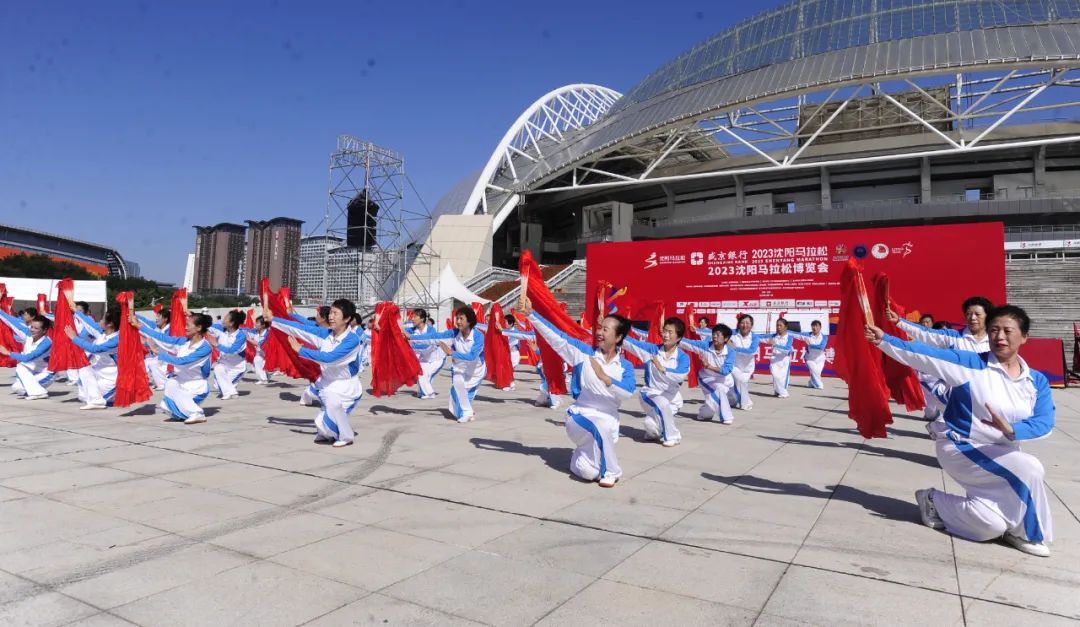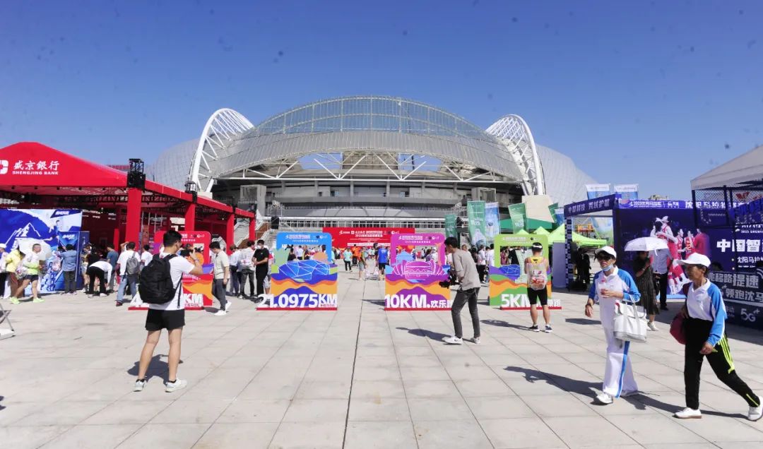领装备,看演出、享美食、拍照打卡--2023沈阳马拉松博览会9月14日在沈阳奥体中心南广场开幕,来自全国的跑友共享这次马博会盛宴。2023沈阳马拉松博览会为期三天,即9月14日至16日。15日开放时间为9:00至17:00,16日开放时间为9:00至21:00。本次马拉松博览会是由辽宁省体育产业集团、沈阳市体育局精心打造的,以马拉松赛事搭台,文体旅经济唱戏的会展活动。辽宁省体育产业集团场馆公司总经理崔岷介绍说:“这是马博会的第一天,来到现场领取参赛装备的跑友和观众非常多,现场有30多个展演团队,在为期3天的时间里,为参观马博会的市民献上精彩表演。同时,组委会将沈城多种口味的鸡架集合在一起,所有参赛选手和市民都可以免费品尝。除此之外,我们还提供了一些具有沈阳元素的城市景象,众多跑友们也在这里进行打卡拍照。”14日9:00,参赛选手和市民陆续来到奥体中心南广场,舞台上的精彩演出吸引众人驻足观看,赢得了台下观众阵阵掌声。今年的马博会现场热闹非凡,不仅能看演出,还能在现场品尝沈阳的特色美食。在本届马博会的几十个展台中,人气最旺的当属沈阳鸡架展台,“烤、炸、拌、熏、煮”五种做法各种口味的鸡架在这里都能免费吃到。来自福建莆田的吴金艳在吃了一口鸡架之后,竖起了大拇指,“早就听说沈阳有闻名全国的鸡架,刚领完装备我就直奔鸡架的展台。刚才吃了好几种口味,有烧烤的、甜辣的,还有炸鸡架,都非常好吃。我也买了几盒,准备带回福建分给亲朋好友,让他们尝一尝正宗的沈阳鸡架。”