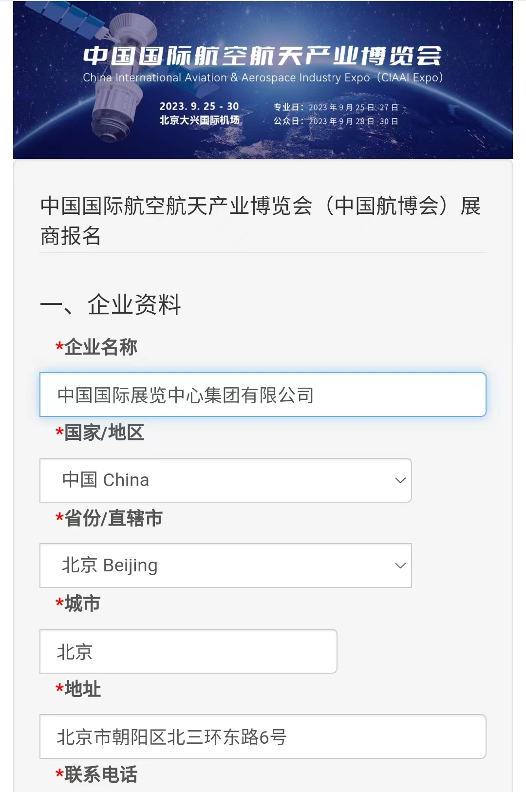 如实填写参展企业信息,并按要求上传相关资料。(提示:所有带*的均为必填项)