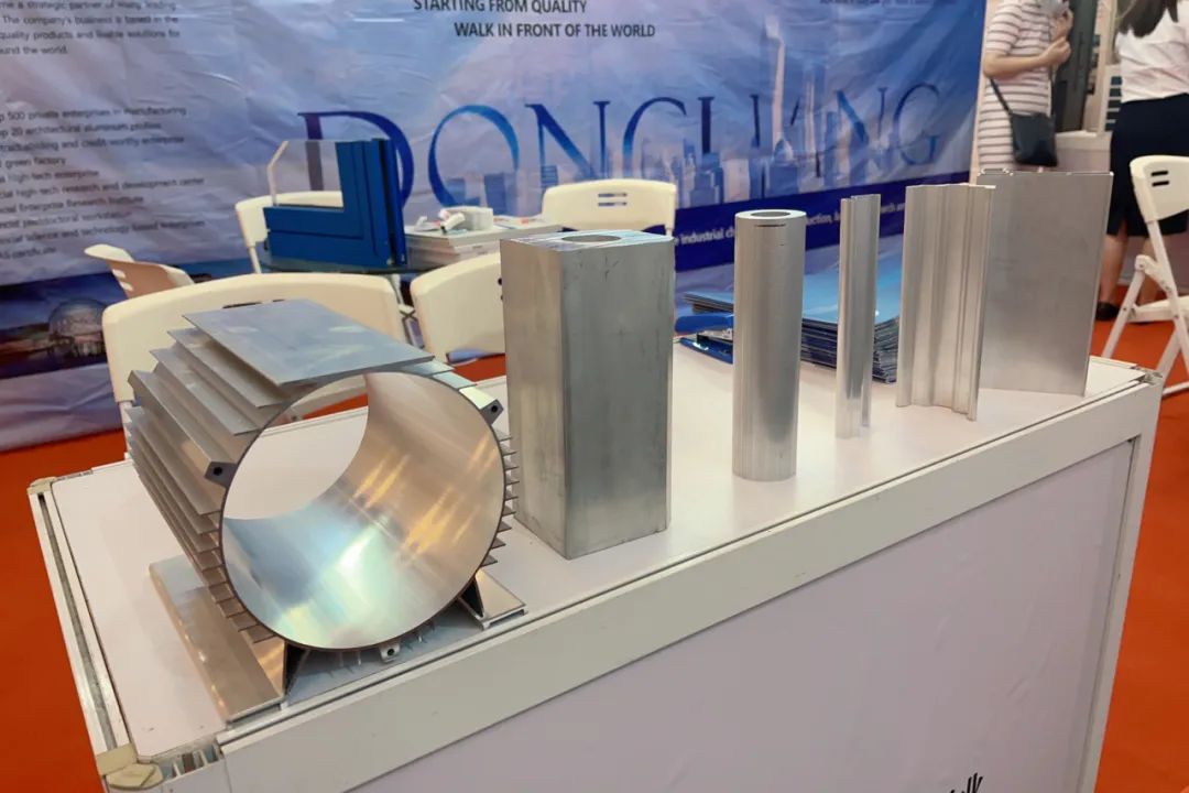 万邦德·栋梁铝业位于B059展位,携带多款热销产品和新品参展,包括门窗、幕墙等建筑铝型材产品,以及电机壳、气缸、电力管材、汽车电池托盘、光伏铝边框等新型工业铝型材产品。