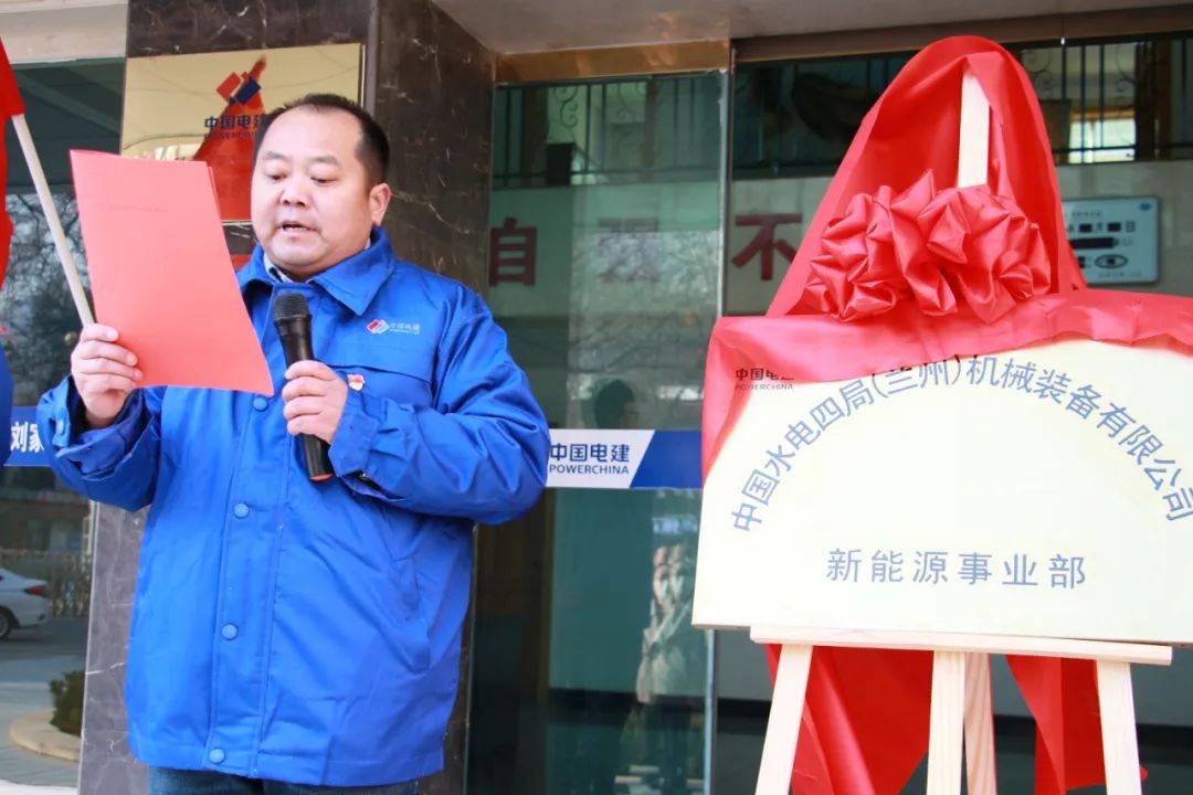 12月30日,中国水电四局(兰州)机械装备有限公司新能源事业部揭牌仪式在刘家峡举行。装备公司党委书记、董事长郭平俊出席揭牌仪式并寄语希望,装备公司副总经理张广力、副总经理兼安全总监高治学、副总经理魏虎明出席仪式。活动由装备公司副总经理兼新能源事业部总经理张春来主持。首先,郭平俊对新能源事业部的成立表示祝贺,他强调,设立新能源事业部,是装备公司落实“转型升级、提质增效、高质量发展”的总体改革与发展思路的具体体现,也是助力“碳达峰、碳中和”,贡献国企力量的一项重要举措,标志着装备公司新能源业务发展进入了新阶段、达到了新高度,这是装备公司多元化发展的一个良好开端。一是要强化多元发展,优化经营结构,在实现自身发展的同时,培养出一批高素质专业化的项目管理团队,优化管理成本,努力提高市场占有率。