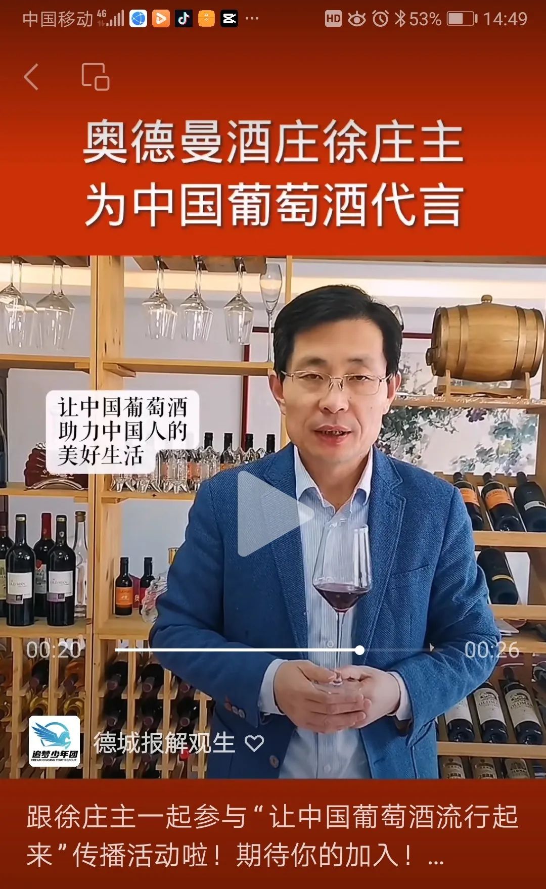 2023年9月15日上午,“2023金秋双节直播季·德州市对接京津冀优质农产品博览会”在德州市电子商务产业园开幕,为期两天。作为德城区重点企业,奥德曼酒庄携“耆红”等多款红酒产品亮相博览会,单设展区,并获得与会领导、客商的高度评价。酒庄总经理董兴水参会。