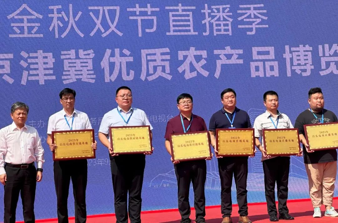 在博览会开幕式上,奥德曼酒庄还被授牌“2023山东电商供应链基地”荣誉称号,酒庄总经理董兴水上台领奖。