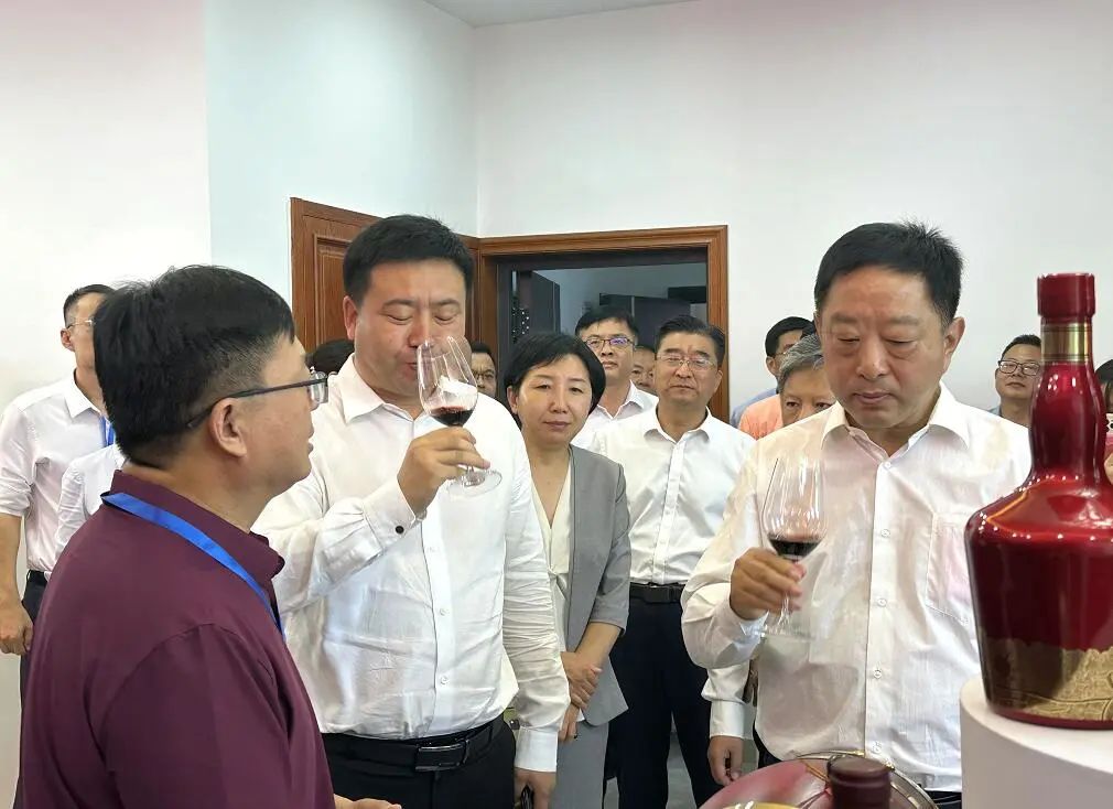 布置精美、琳琅满目的奥德曼酒庄展区前,吸引了众多与会嘉宾。在德州市商务局党组书记、局长夏连红的陪同下,与会领导及重要客商来到展台前,在品尝了酒庄经典之作“耆红”后,非常惊喜,对奥德曼的产品表现出浓厚的兴趣,并当场给予积极肯定和高度评价。