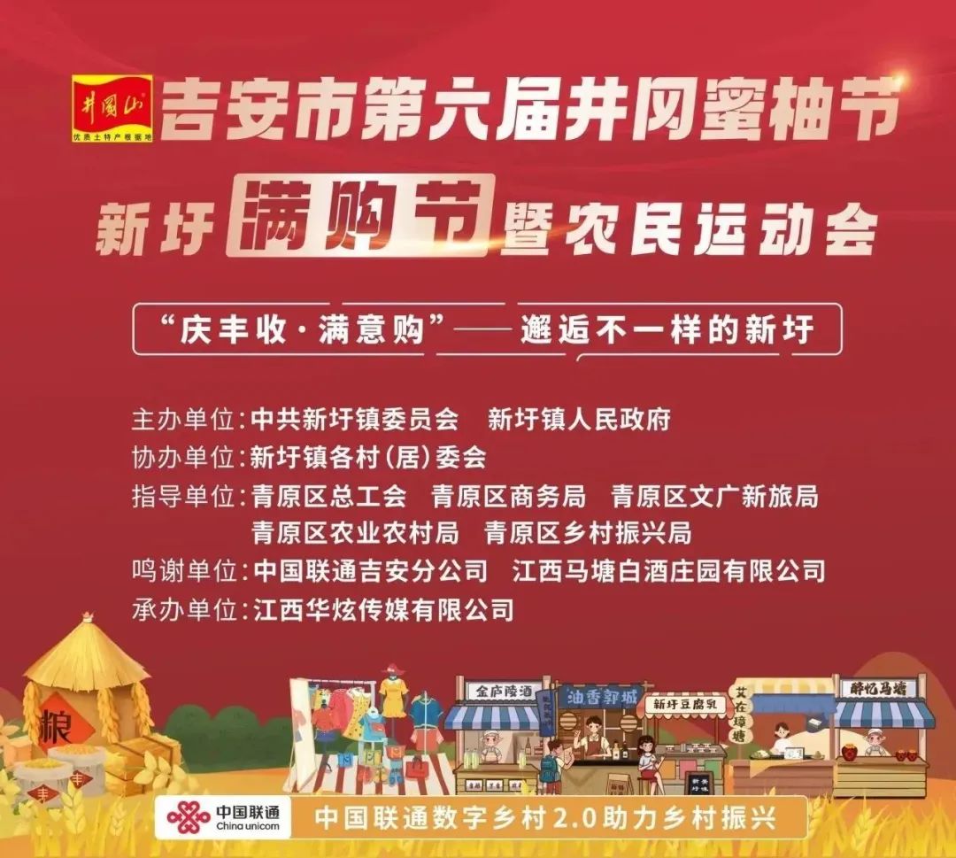 秋收的喜悦遍布新圩每个角落,我们迫不及待与大家分享。在“吉安市第六届井冈蜜柚节新圩满购节暨农民运动会”活动中,我们设置了展销摊位,期待与大家一起感受收获的喜悦。