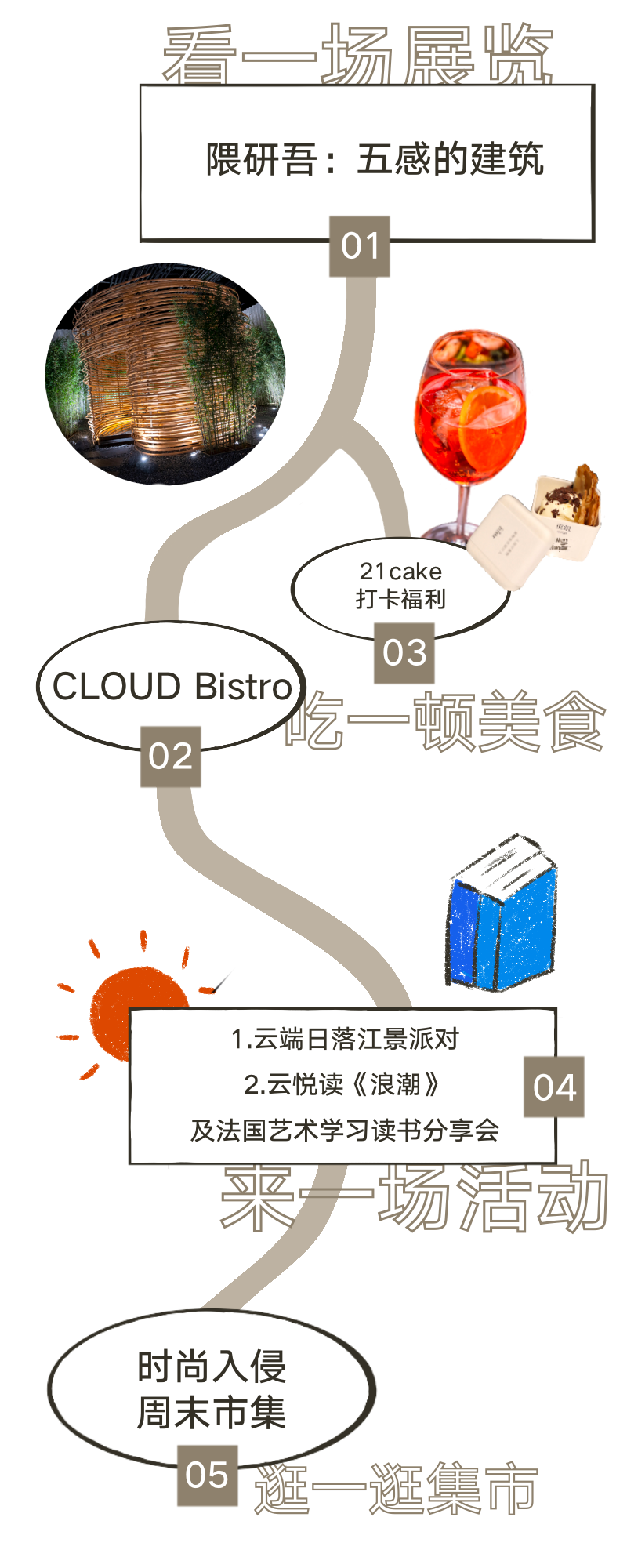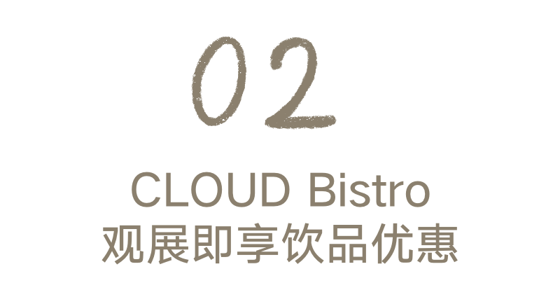 即日起至9月28日,凭借“五感的建筑”展览门票,可至四层CLOUD Bistro餐厅享受特别饮品立减10元优惠,每人仅限一次。